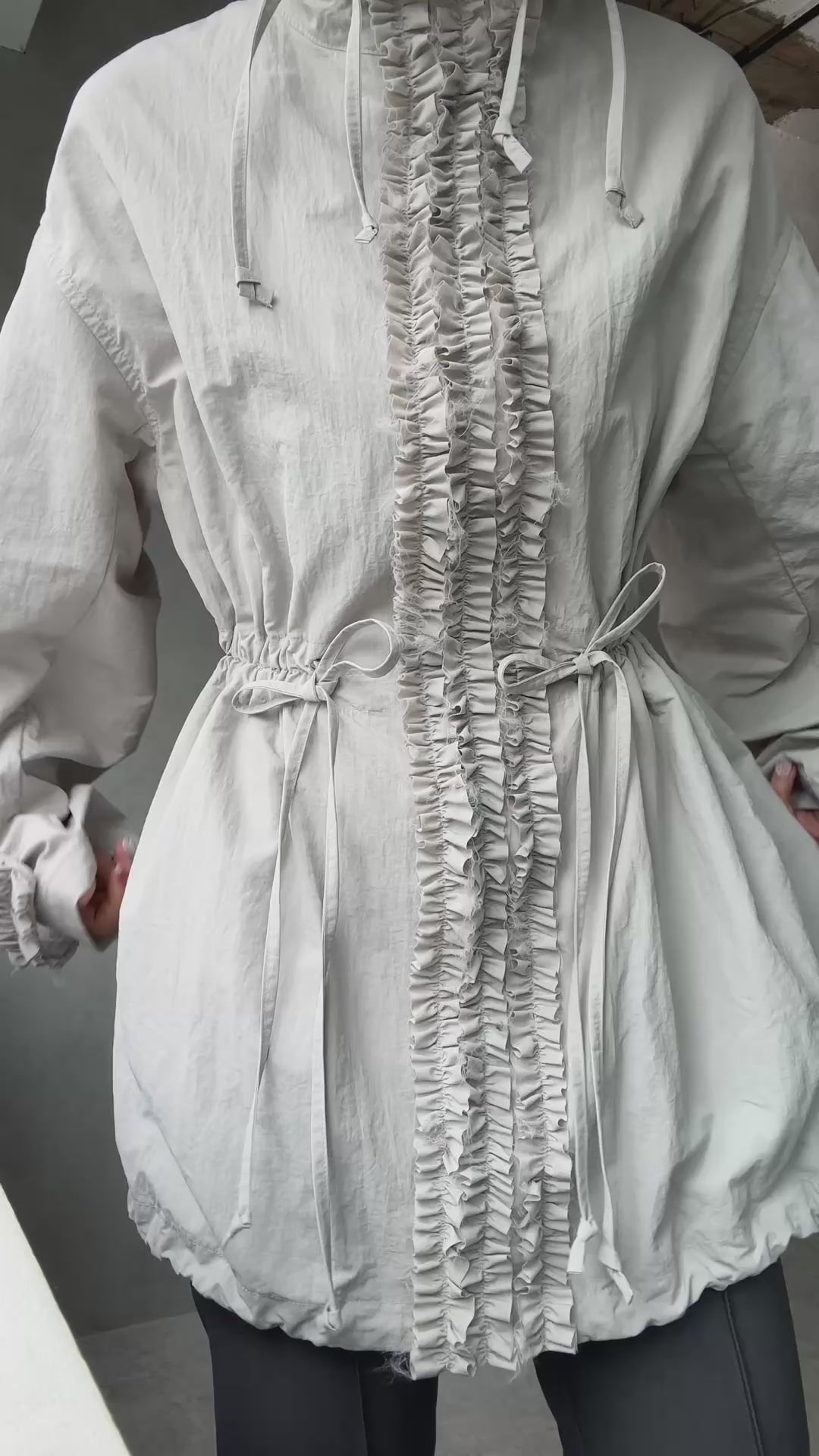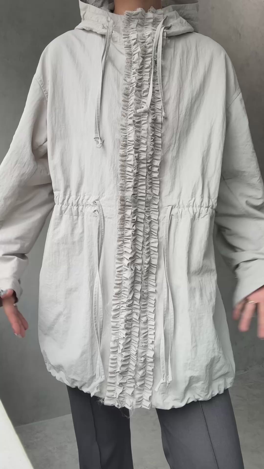 ・ウエスト&フードまわりはドロスト+リボンで結ぶ仕様でフィット感を調節可能